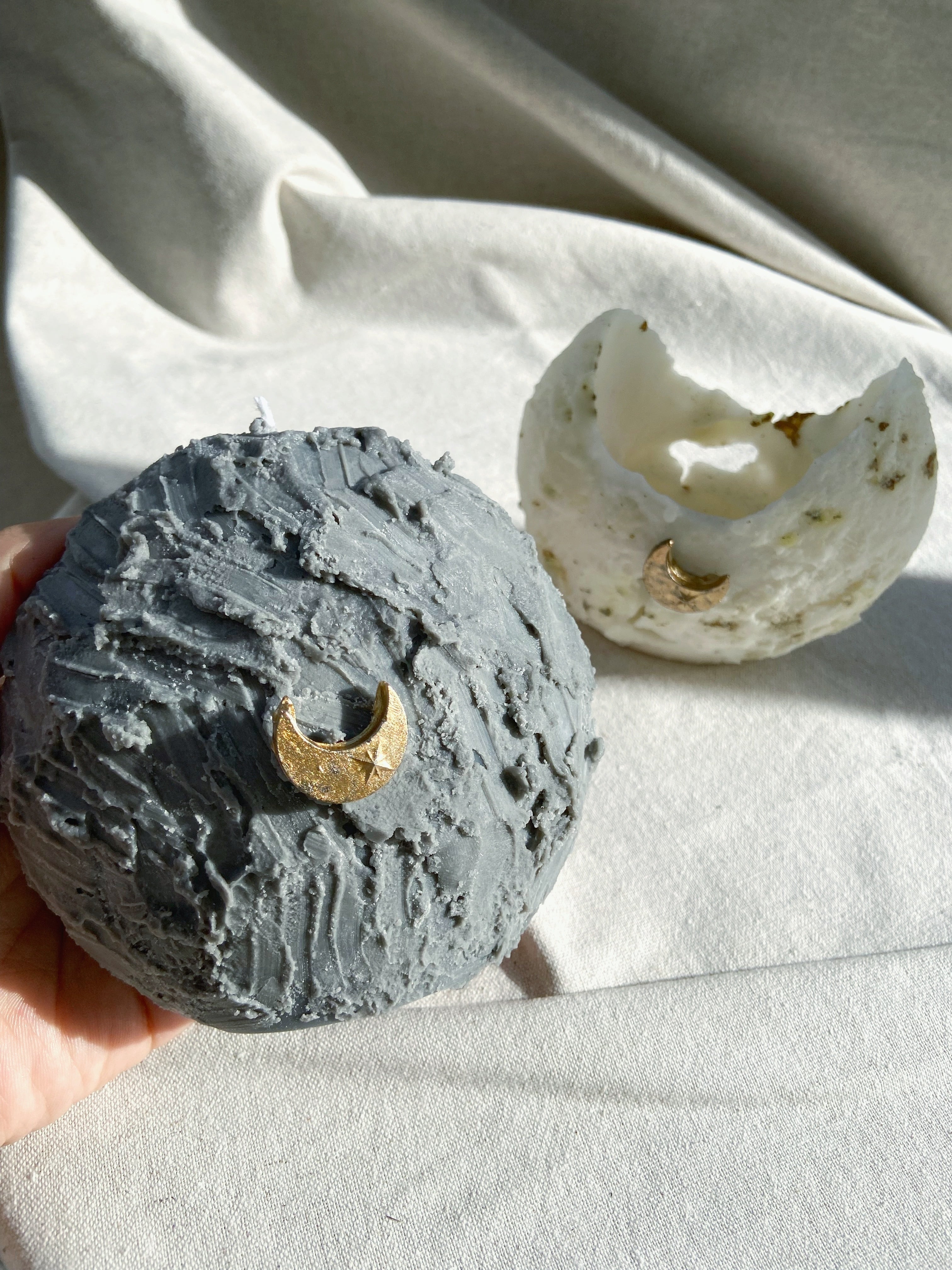 溶けていくと月の満ち欠けの様に満月から三日月に変化していく美しいキャンドルです。